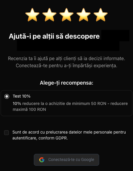 Cu sistemul nostru de QR-uri și vouchere automate, fiecare recenzie devine o oportunitate de fidelizare și de atragere a clienților noi.